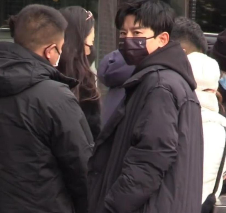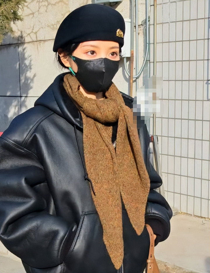 首先要说的就是田曦薇,从现场的照片中可以看到,她当时把自己包裹的很严实,可能是天气太冷的缘故,但这并不影响辨识度。