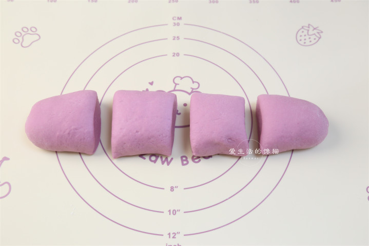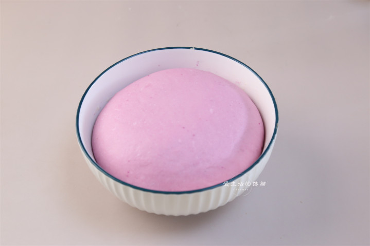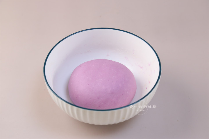 紫薯泥60克,奶粉15克,紫薯粉6克,中筋粉280克,温水110克,白糖60克
