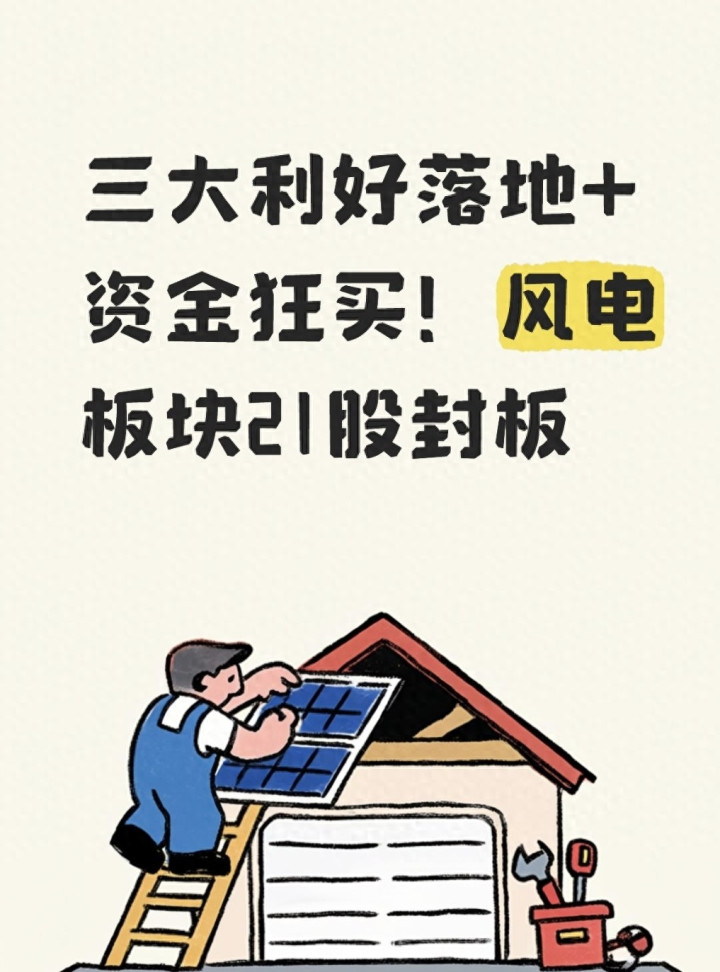 盘后三大利好集中落地,风电板块直接掀起涨停狂潮,21只龙头股全天封死涨停板,高盛早已提前布局两股,这波上涨有实打实的真实支撑。