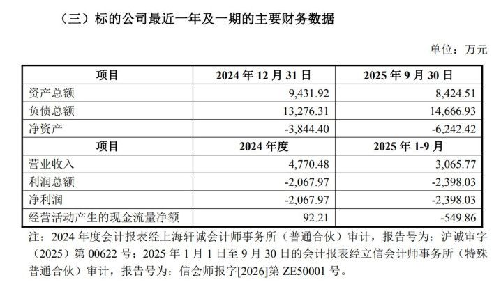 湖南蓝怡财务数据显示,公司2024年净利润为-2067.97万元,2025年前三季度净亏损2398.03万元,已超过2024年全年亏损额。截至2025年9月30日,其净资产为-6242.42万元。