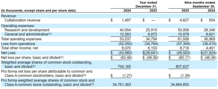 Aktis Oncology在2025年前9个月营收为55万美元,开云中国app登录入口运营亏损为3642万美元,净亏损为3192万美元。