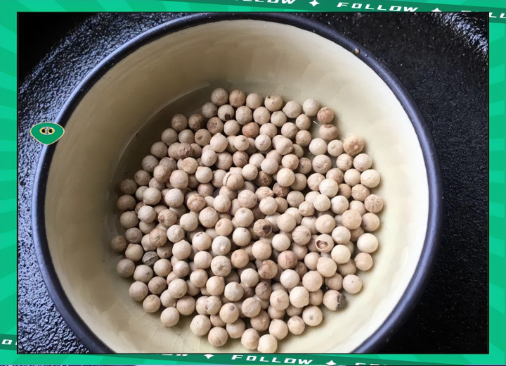 白胡椒:选取完全成熟的胡椒果实,经浸泡发酵、搓洗去皮、晒干制成。外皮脱落,内里呈白色或黄白色,质地坚实。