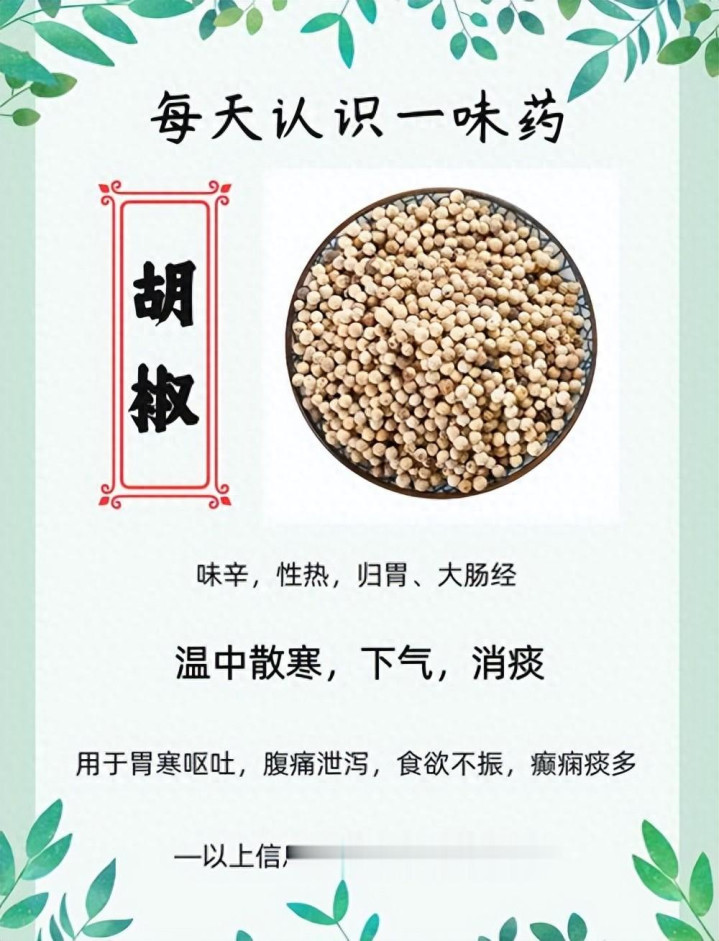 二、胡椒的两大核心功效:温中散寒、下气消痰