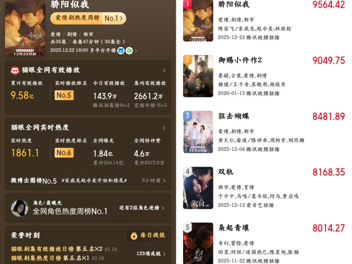 先是《骄阳似我》完播,拿下了平台3000的热度,刷新了2024年以来现代偶像剧的最高纪录 。