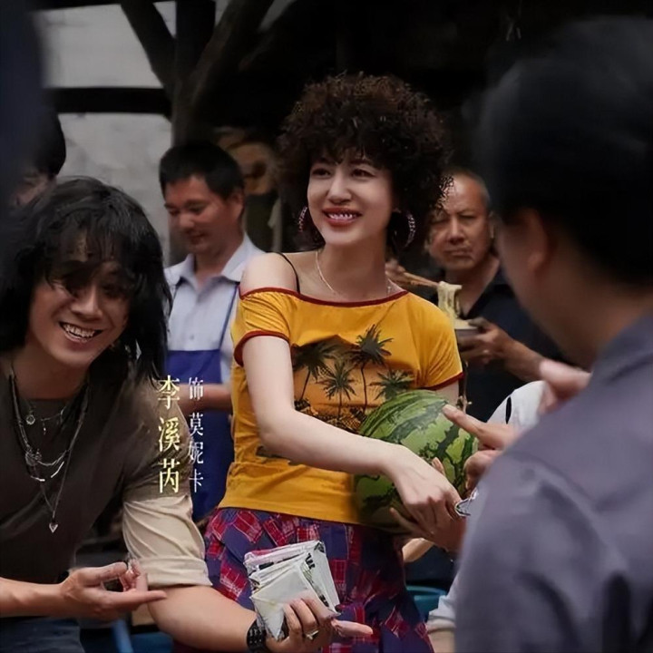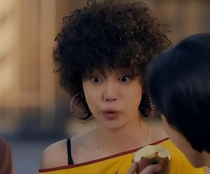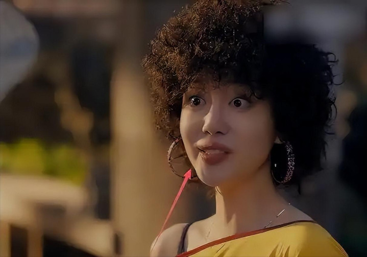 一露面就扎眼得很,头发卷得像烫了个泡面,耳朵上挂着大圈圈耳环,穿的衣服花里胡哨还露着腿,跟剧里80年代小镇的氛围完全不搭边。