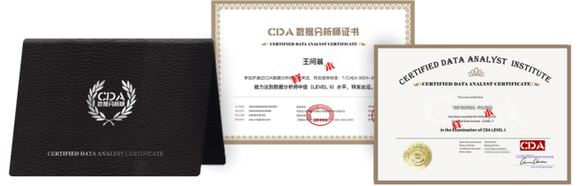 CDA数据分析师是数据领域认可度最高的证书,与CPA注会、CFA特许金融师齐名。受到了人民日报、经济日报等权威媒体推荐。