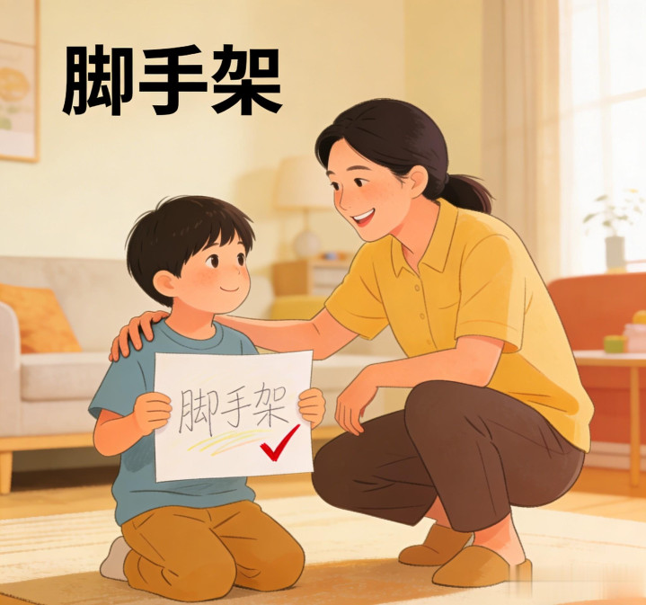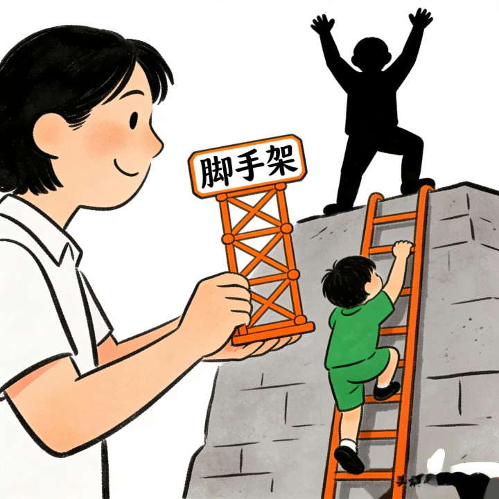 所谓“脚手架”,就是在孩子够不着目标时,搭一把梯子,等孩子站稳了,就及时撤掉。比如孩子写作文卡壳,不要直接帮他写好段落,而是引导他“我们先想想,今天发生的最有趣的事是什么”“这件事里,你印象最深的画面是什么”;孩子学系鞋带,不要因为他学得慢就代劳,而是手把手教他步骤,让他自己反复练习。