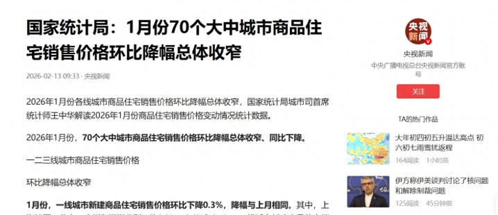 2026年已历程去1个月,国度统计局数据泄露,一月份七十个大中城市商品住宅销售价钱环比降幅收窄,新址价钱着落幅度保握在零点三七个百分点,二手房降幅缩小到零点五四个百分点,这么的变化让不少东说念主以为楼市启动有点稳住的迹象。