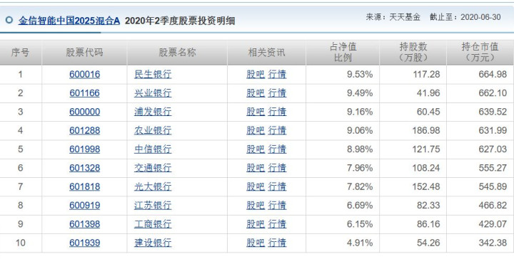 {jz:field.toptypename/}金信智能中国2025成立于2016年,但自2017年起,该基金便显露出对银行股的强烈偏爱,当年各季度前十大重仓股中平均有六只为银行股。自2018年起,这种偏好演变为高度固化,前十大重仓股中银行股数量常维持在八只及以上,2020年甚至出现全部由银行股霸榜的局面。