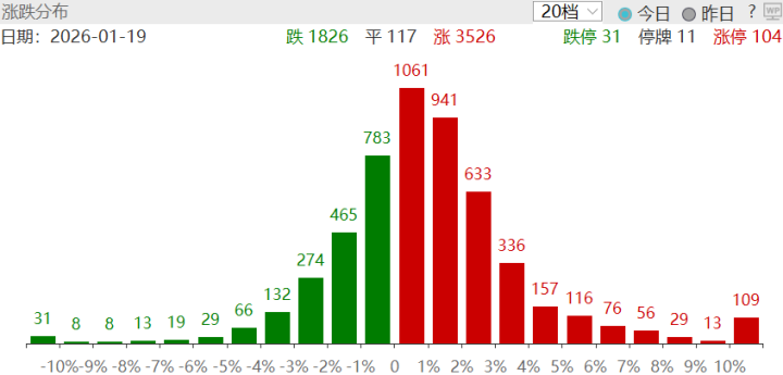 两市分析:盘面上看板块个股表现强于指数,整体呈现涨多跌少的格局,超2/3个股出现上行,虽然市场成交量出现明显回落,但整体市场人气以及赚钱效应保持较好,板块个股间开始出现有序轮动,前期高位品种继续出现较为明显的下跌调整,资金逐渐回流至相对低位的品种中。在美联储1月可能暂停降息的背景下,受到近期多重地缘风险集中出现,地缘政治成为短期焦点,美委冲突、格陵兰岛局势及伊朗局势再次引起全球投资者对地缘政治频繁冲突的不安,贵金属价格继续上行,黄金价格再创新高,受此影响贵金属相关品种也出现集体上行,但值得注意的是部分品种短期上涨幅度过大,一定程度偏离了基本面支撑,投资者需甄选个股,不宜盲目追涨。根据国家统计局发布的12月经济数据,发电机组相关品种继续保持高增长势头,发电机组相关品种工业增加值同比增加37.6%,受到基本面的共振,相关电力电网设备,特高压,输电储能等板块继续延续较好的趋势性上涨势头,部分品种出现加速上行的状态,部分品种短期涨幅相对较大,投资者不宜盲目追涨。