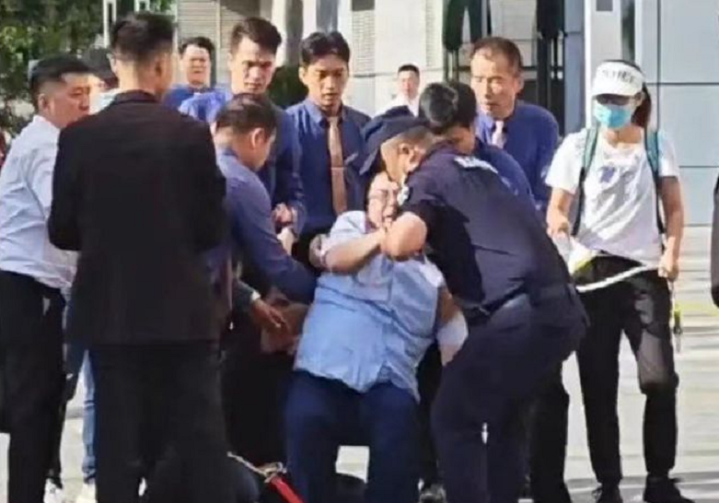 比如上面这张他被人追打的照片,就出自两年前,他去自家公司视察时发生的一幕。