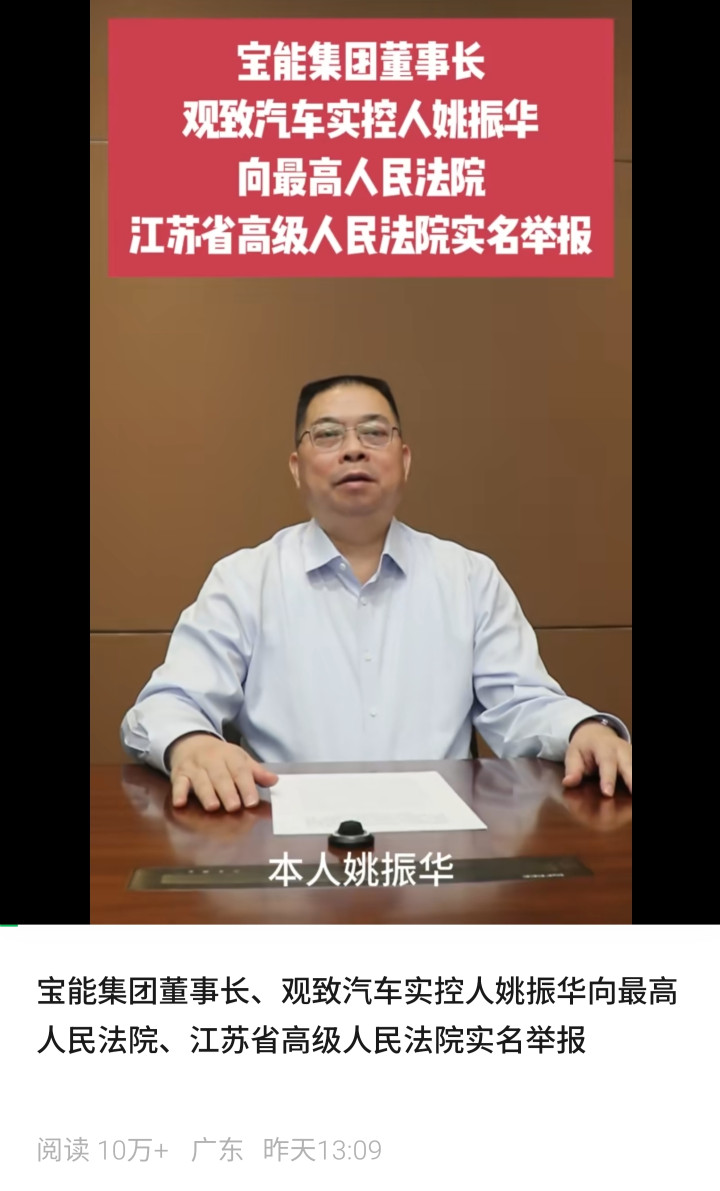在视频中,姚振华直指地方相关领导、经开区主管单位与司法部门,声称三方“串通操纵”将原本价值80亿的资产,仅估值为15亿,并以8.6亿的“白菜价”法拍,要求上级部门严查相关违规行为,还宝能一个公道。