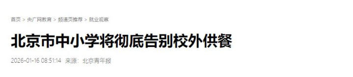 央广网:北京市中小学将彻底告别校外供餐