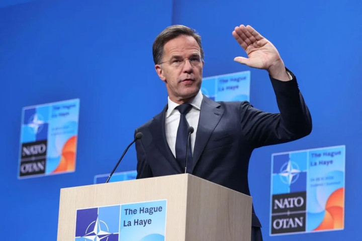 2025年6月25日,在荷兰海牙,北约布告长吕特在北约峰会技术出席新闻发布会。新华社记者赵丁喆摄